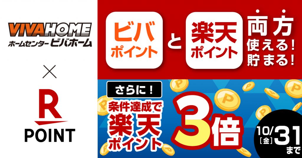 「楽天ポイントがビバホームでも使える!貯まる!」記念キャンペーン第13弾!!