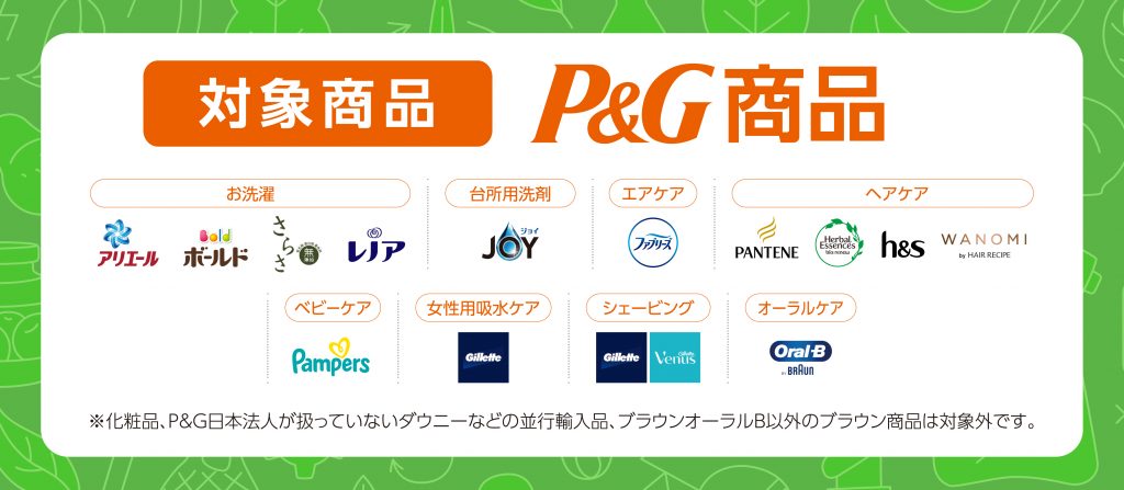 ※対象外…化粧品、P&G日本法人が扱っていないダウニーなどの並行輸入品、ブラウンオーラルB以外のブラウン商品