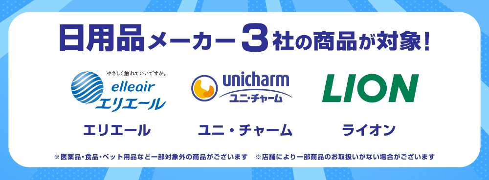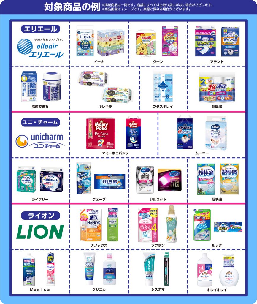 ・ユニ・チャーム(マミーポコパンツ、ムーニー、ライフリー、ウェーブ、シルコット、超快適等)
