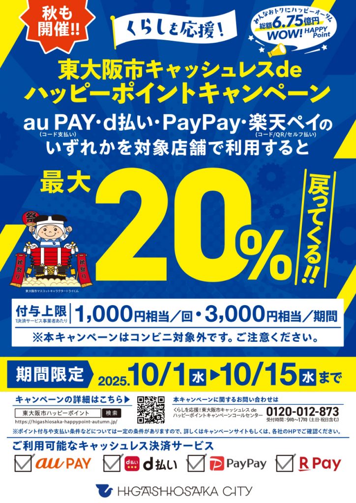 くらしを応援!東大阪市キャッシュレスdeハッピーポイントキャンペーン