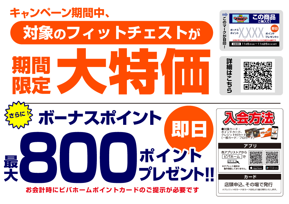 期間中、対象のフィットチェストが大特価!
