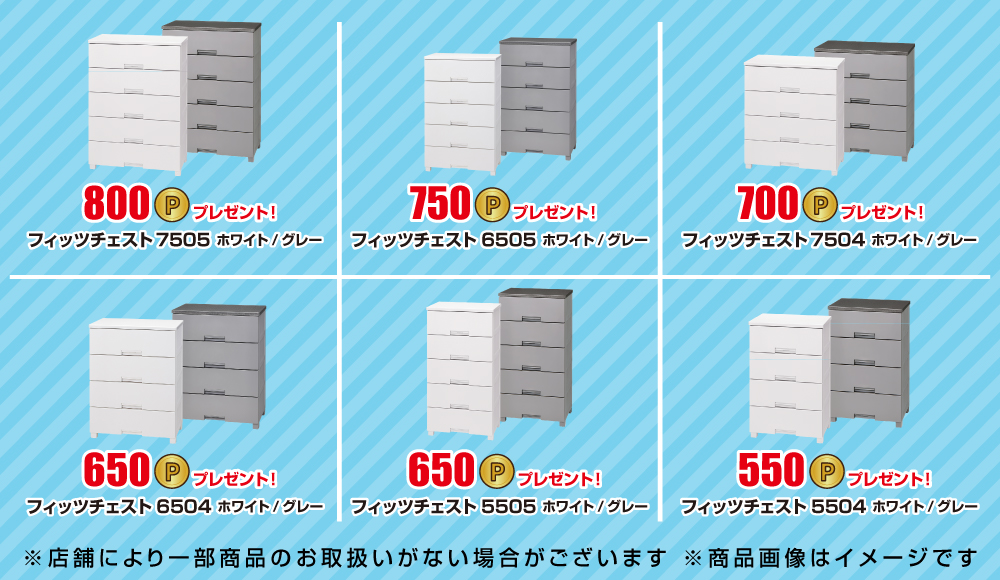 フィットチェスト5504、5505、6504、6505,7504,7505(ホワイト/グレー)が対象となります。