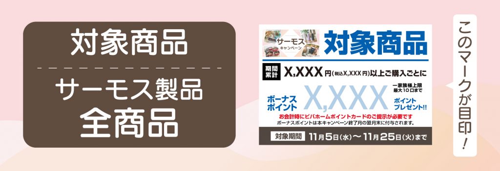 キャンペーン期間中、サーモスの対象商品を累計で4,546円(税込5,000円)以上ご購入ごとに1,000ポイントプレゼント🎁