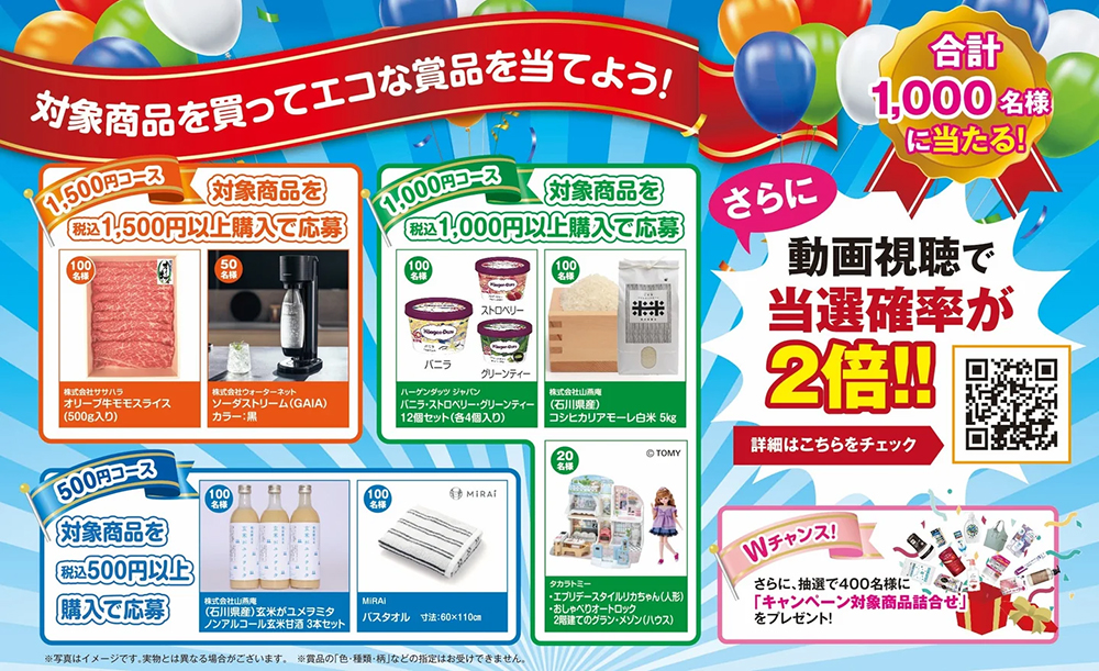 ※ 3R動画視聴または環境取組み事例閲覧で当選確率が2倍になります。