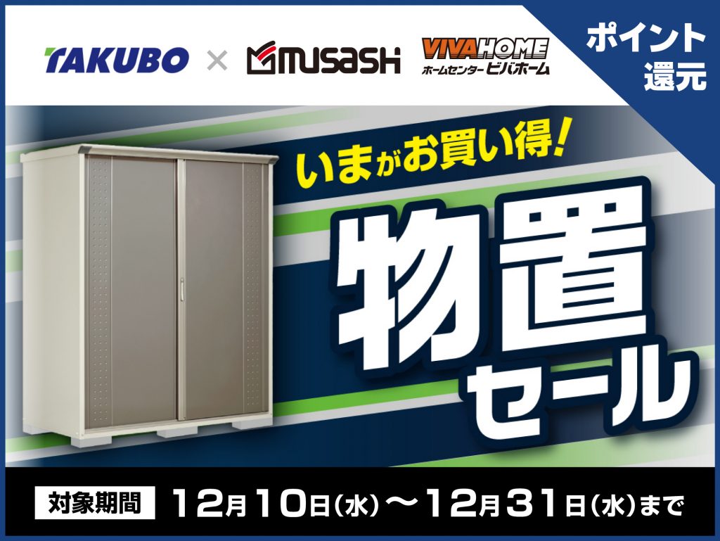 対象店舗にてタクボ物置、収納庫がメーカー定価の最大35%OFFに加えて