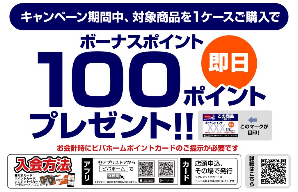 ビバホーム倶楽部カードのボーナスポイント100ポイントプレゼント!
