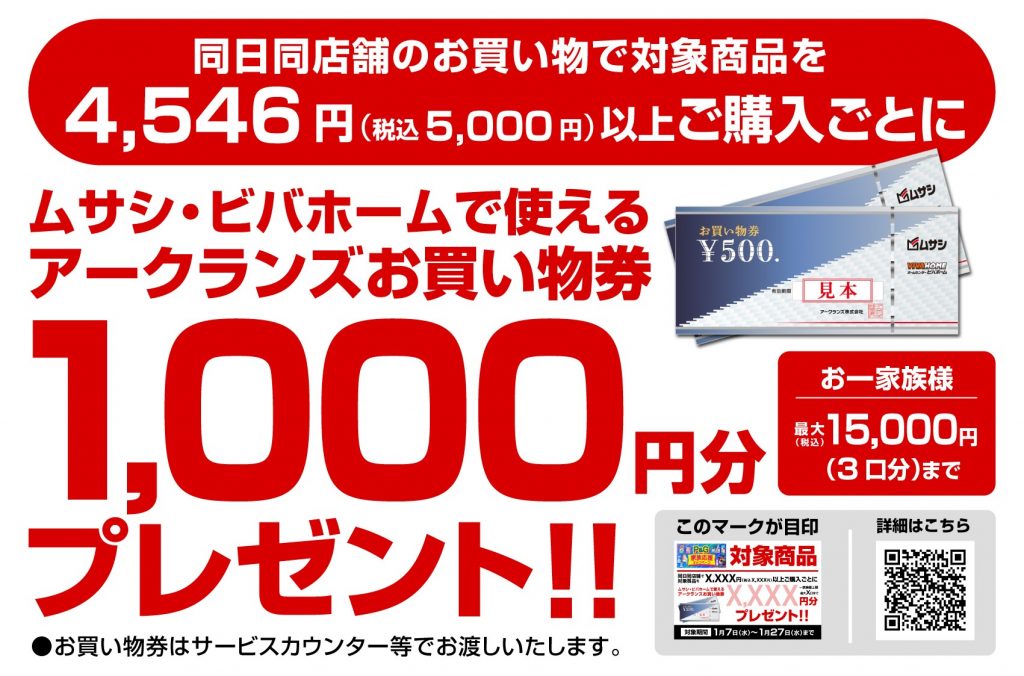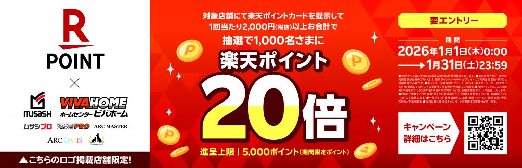 同日同店舗にて対象商品を4,546円(税込 5,000円)以上ご購入ごとに、ビバホーム・ムサシで使える