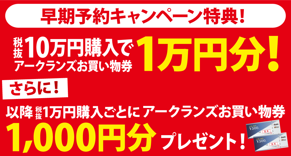 さらに、早期予約期間のまとめ買いでお買い物券がもらえるキャンペーンも実施中。