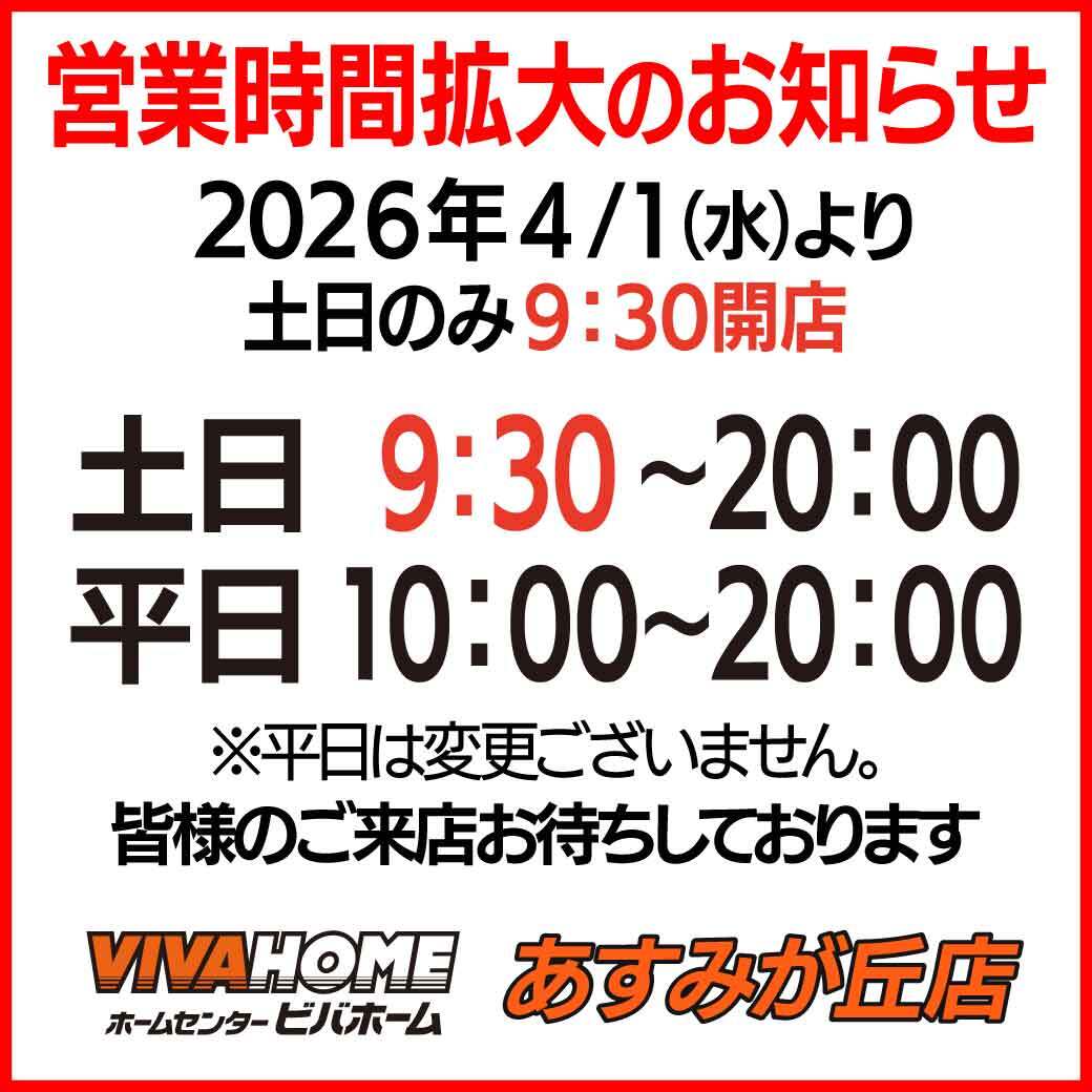 あすみが丘店は、営業時間を拡大し4月1日(水)より土日のみ9:30開店とさせていただきます。 皆様のご来店をお待ちしております。