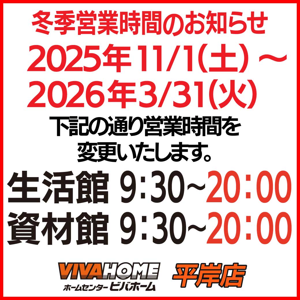 平岸店は、冬季営業のため2025年11月1日(土)~2026年3月31日(火)の期間20時閉店致します。 お客様にはご不便をおかけいたしますが、何卒ご理解賜りますようお願い申し上げます。