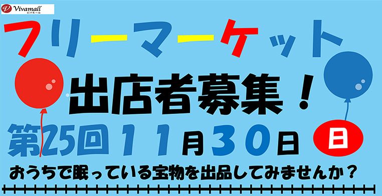 第25回フリーマーケットを開催します! 【実施内容】 開催日/第25回 2025年11月30日(日) 会場/ビバモール加須 一番街 「NAKAMITI」 【加須市下高柳1丁目29番】 開催時間/10:00~15:00 予…