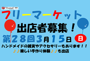 第28回フリーマーケットを開催します! 【実施内容】 開催日/第28回 2026年3月15日(日) 会場/ビバモール加須 1番街フードプラザ マクドナルド前 【加須市下高柳1丁目29番】 開催時間/10:00~15:00…