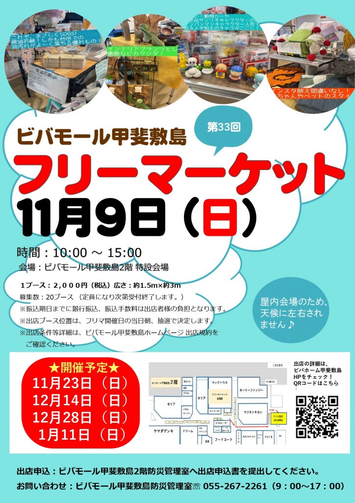 ・その他の出店条件につきましては 『ビバモール甲斐敷島 フリーマーケット出店規約』に準じます。