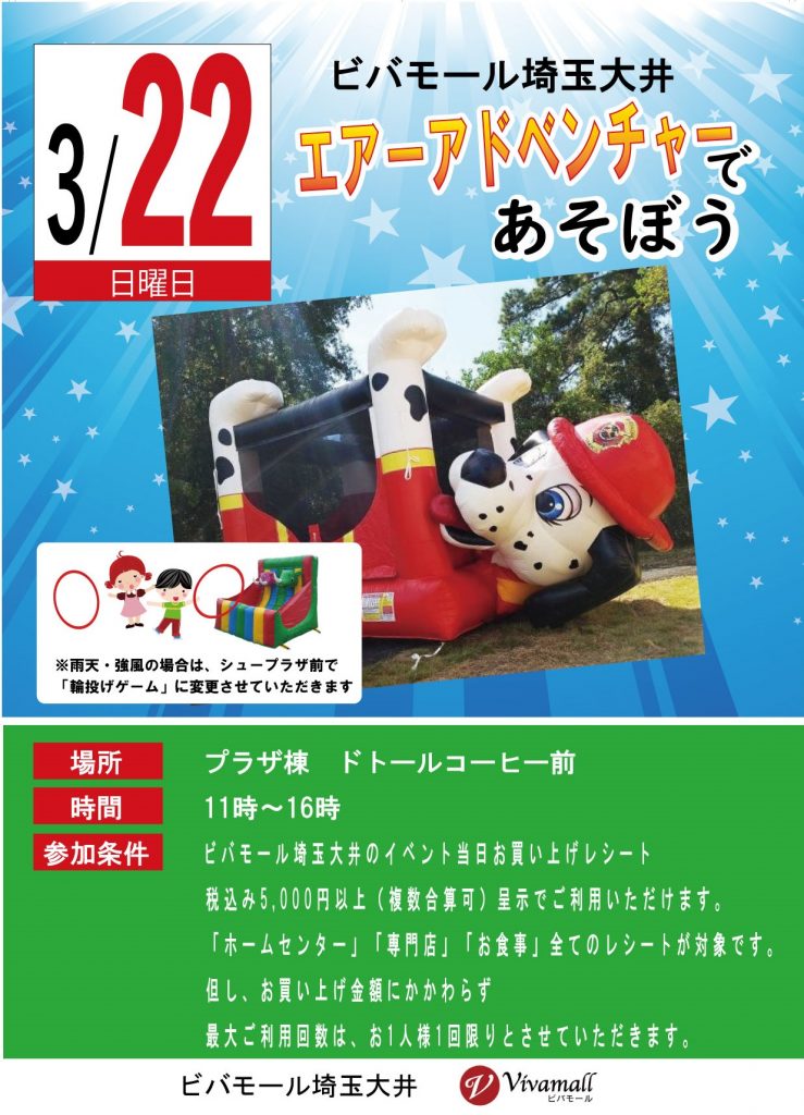 ビバモール埼玉大井でイベント当日・3月22日(日)にお買い上げレシート