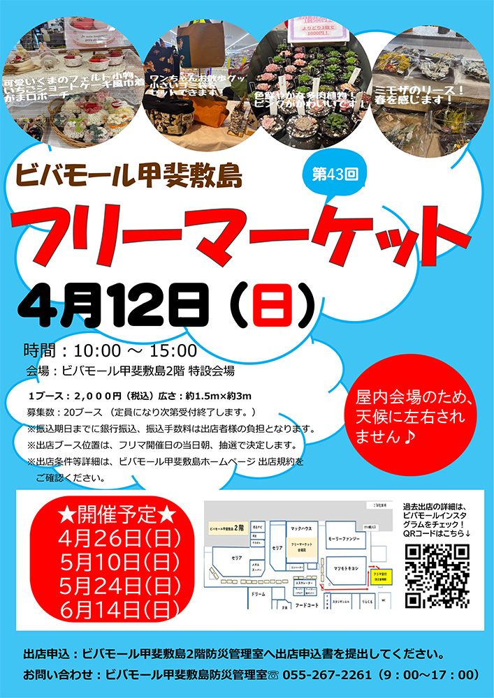 ・その他の出店条件につきましては 『ビバモール甲斐敷島 フリーマーケット出店規約』に準じます。