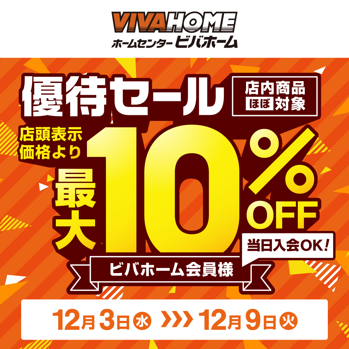 12/3(水)~12/9(火)の7日間最大10%OFFの優待セールを開催いたします!