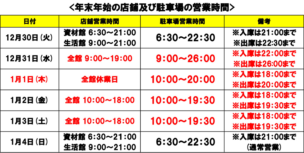 詳細は駐車場入り口の看板および店頭の告知をご覧くださいませ。