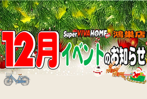 12月イベントのご案内! ビバホーム鴻巣店では12月もイベント目白押し!体験会や実演会等、多数開催予定となっております。 目玉イベントは高圧洗浄機ケルヒャー実演会!12月20日(土)21日(日)の2日間開催!又、当日対象…