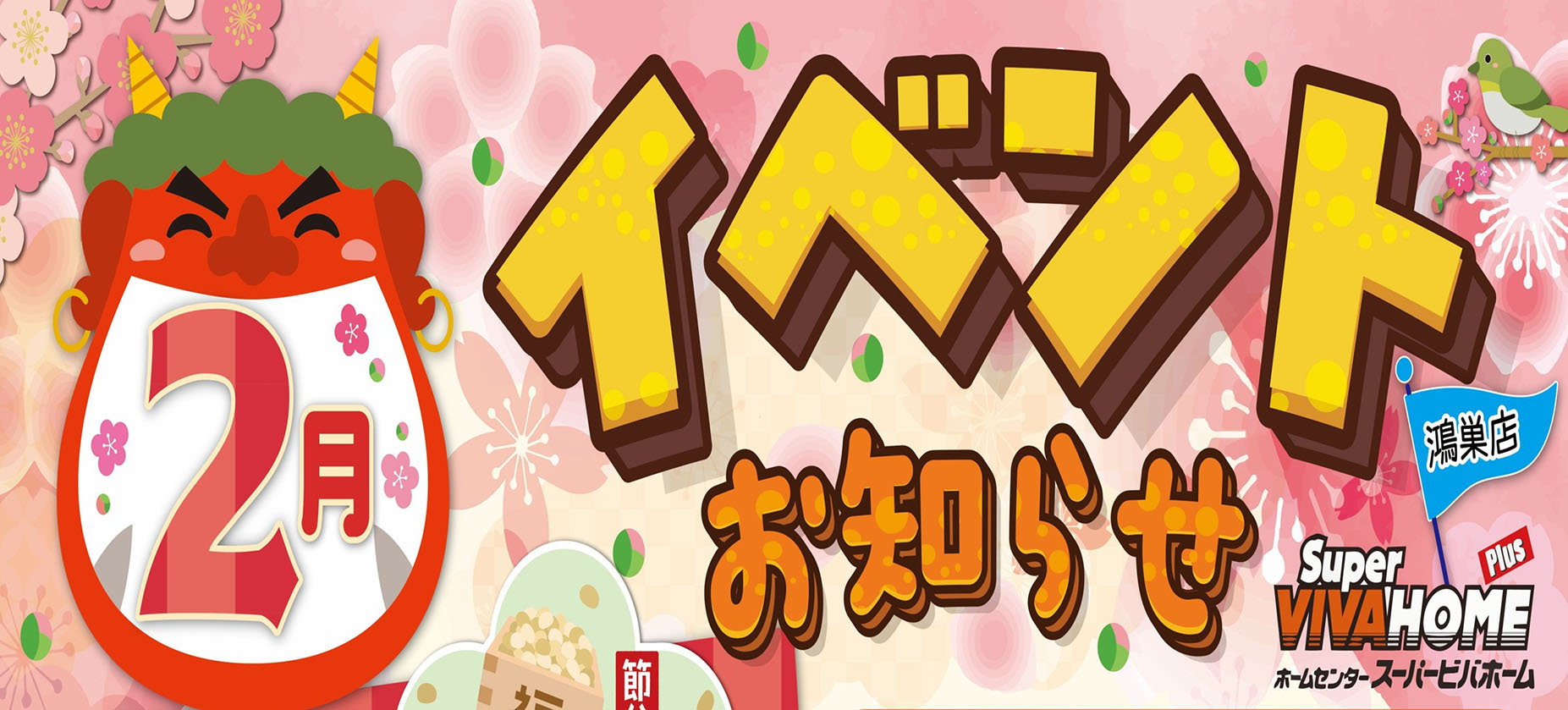 2月イベントのご案内! 2月1日(日)は、みんな集まれ! 節分お面づくり(小学生以下のお子様 無料参加)を企画してます👹 2月22日(日)には、毎回大好評のガラポン抽選会も企画しています! 他にもワクワク…