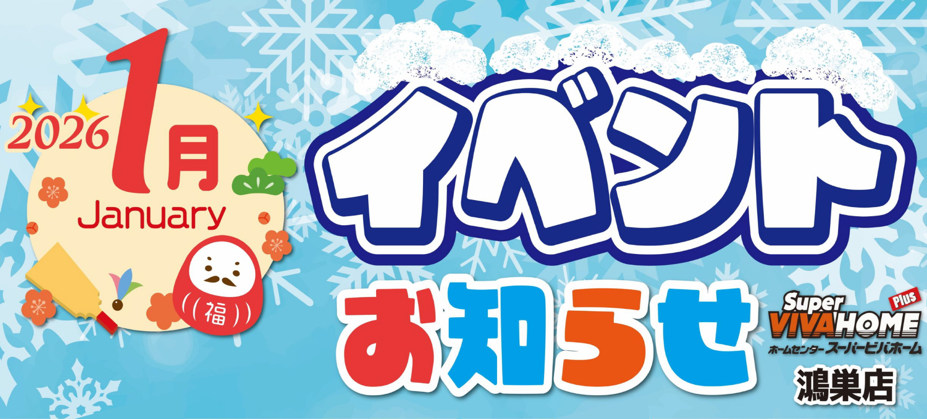 1月イベントのご案内! ビバホーム鴻巣店では1月もイベント目白押し!体験会や実演会等、多数開催予定となっております⛄ みなさんのご来店お待ちしております♪