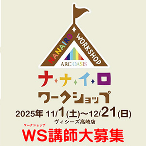 ナナイロワークショップ講師募集中! ヴィシーズ高崎店では、毎年恒例で開催しております夏休みワークショップを、土曜、日曜、祝日にも開催することに致しました!ワークショップの講師として参加頂ける方を募集いたします!『つくる・…