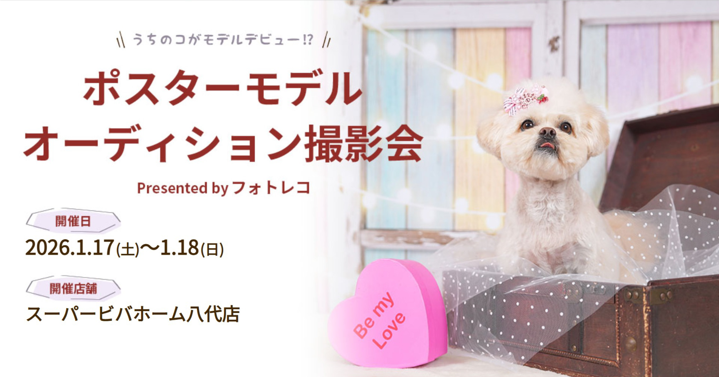 ペットポスターモデルオーディション撮影会を開催します♪ ★事前ご予約特典★事前予約の上ご参加いただいた方全員に、撮影したお写真で作るうちのコオリジナルキーホルダーをプレゼント! 日 程:2026年1月17日(土)・18日…